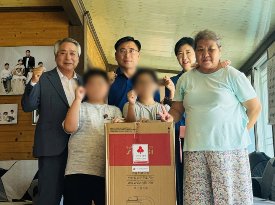 [남도저널 양용숙 기자] 장흥군 관산읍 지역사회보장협의체는 25일 저소득 아동가구를 찾아 제습기를 지원했다.