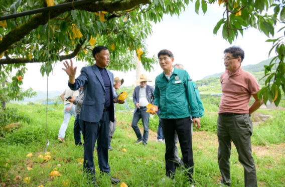 노 시장은 “작년에는 이상기온으로 냉해 피해가, 올해는 잦은 강우와 습한 날씨로 탄저병 등의 병충해 피해가 반복적으로 발생해 무더운 날씨에도 고생하는 과수농가의 어려움이 매년 가중되고 있어 안타깝다”며, “농가의 어려움을 해소할 수 있도록 여러 지원 방안을 모색하겠으니, 농가 여러분께서도 힘내셔서 함께 난관을 극복하자”고 격려했다.
