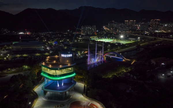 음악분수와 개미산 전망대 담당 부서에서는 믿을 수 없는 적극성으로 설계용역, 예산확보, 인허가 절차 이행 등을 완료했고, 주민들의 적극적인 협조로 토지보상 문제도 잡음 없이 해결했다. 꽃강길 음악분수대는 2023년 2월, 개미산 전망대는 같은 해 6월 공사를 시작했다. 제한급수 이야기가 나올 정도로 가물었던 때였지만, 중요한 공사들을 시작하자 4달 동안 1,200㎜가 넘는 비가 내렸다. 해갈에 감사함도 잠시, 홍수 피해를 우려할 만큼 작업조건은 좋지 못했다. 그럼에도 담당 부서에서는 안전사고 예방을 철저히 하여 단 한 건의 사고나 인명피해 없이 2023년 10월 보도교 경관과 음악분수대 설치를 끝냈고, 2024년 6월에는 개미산 전망대를 완공했다. 빠른 완공보다 안전사고와 하자 없는 마무리가 더 고마웠다.