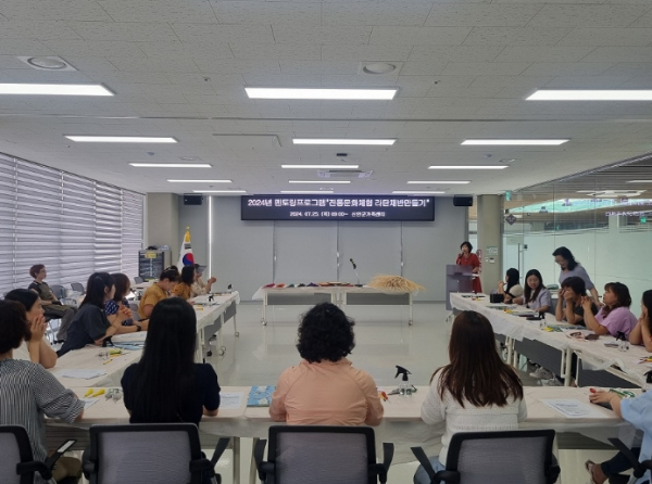 [남도저널 봉현구 기자] 신안군은 25일 결혼이민자들의 한국정착지원을 위하여 새마을 문고회 회원 12명을 포함한 총 24명이 신안군 가족센터에서 함께 전통문화체험 및 한국 음식으로 건강한 여름나기 프로그램을 추진했다.