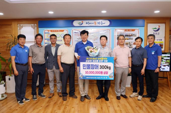 이날 이성현 민물장어양식수협 조합장과 전명원 ㈜보고푸드 대표는 장흥군청을 찾아 물고기 잡기 체험에 사용해 달라며 해당 물품을 기탁했다.