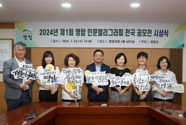 [남도저널 김승귀 기자] 영암군이 지난 24일 군청에서 ‘제1회 영암 인문 캘리그래피 전국 공모전’ 시상식을 열고, 15개 수상작에 시상했다.