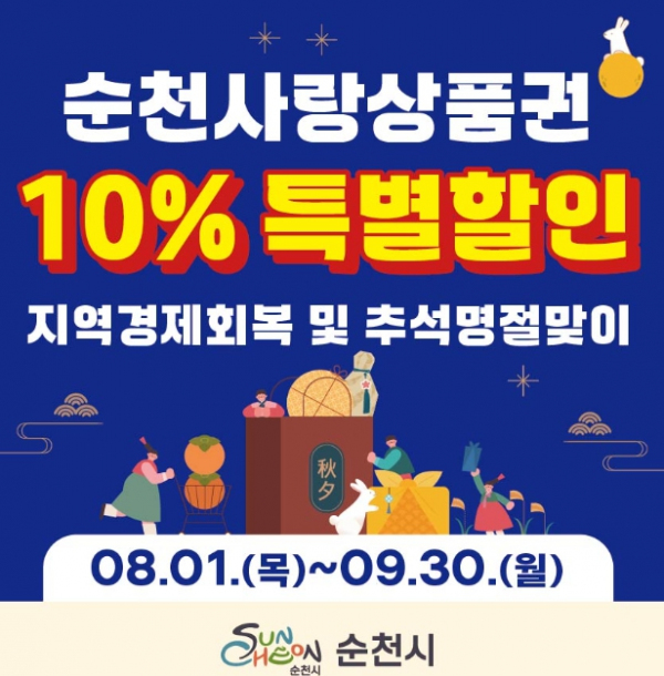 [남도저널 김영도 기자] 순천시는 오는 8월 1일부터 9월 30일까지 순천사랑상품권 10% 특별할인판매를 실시한다고 밝혔다.