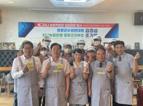 이날 행사에는 김정섭 영광군수 권한대행과 조기영 NH농협은행 영광군지부장이 일일점장으로 함께하여 근로장애인과 시설관계자를 격려하고 직접 주문을 받아 음식을 제공하는 봉사를 통해 친근함과 소탈한 모습으로 식당을 찾은 손님들과 소통하는 의미 있는 시간을 가졌다.