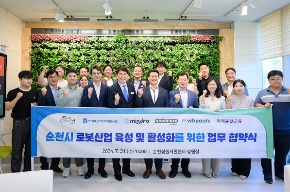 [남도저널 김영도 기자] 순천시는 7월 31일 순천정원지원센터에서 순천시 로봇산업 본격 육성을 위해 로봇기업들과 업무 협약식을 개최했다.