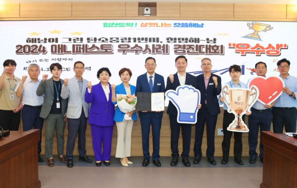 [남도저널 김승귀 기자] 해남군이 한국매니페토실천본부에 주관한 ‘2024 전국 기초단체장 매니페스토 우수사례 경진대회’기후환경생태분야 우수상을 수상했다.