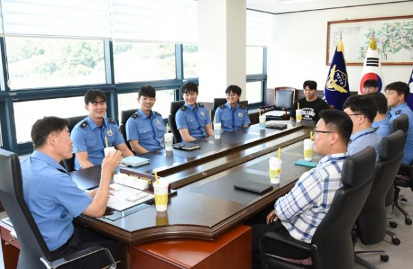 [남도저널 양용숙 기자] 완도해양경찰서는 지난 7월 31일 지휘관과 3년 미만 신임 경찰관들 간 소통 간담회를 통해 상경하애(上敬下愛) 정신을 되새기고 동료 친화적 조직문화를 조성하는 시간을 가졌다고 밝혔다.