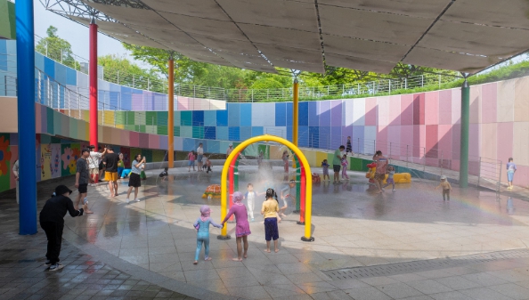 정원의 여름 힐링 스팟으로는 시원한 나무 그늘 아래 발을 담그고 물장구를 칠 수 있는 개울길 광장과 넉넉한 그늘을 아낌없이 내어주는 도시숲, 시원한 개방감으로 눈이 호강하는 5천 평의 화훼공간의 스페이스 허브가 있다.