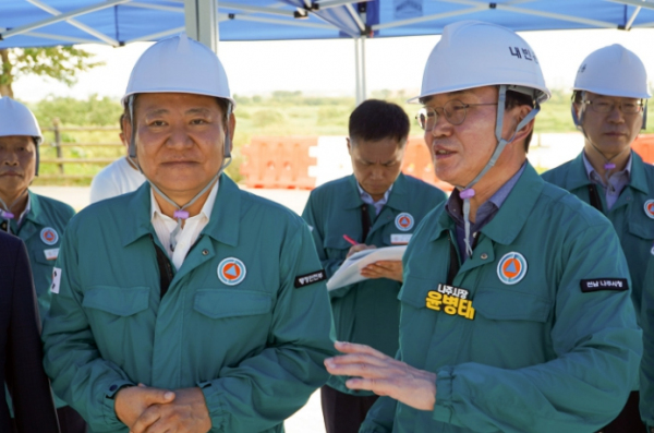 [남도저널 김용범 기자] 윤병태 나주시장은 1일 나주시를 방문한 이상민 행정안전부 장관과 기상이변에 따른 자연재해 예방을 위해 추진 중인 나주천 풍수해 정비사업 현장을 점검했다.