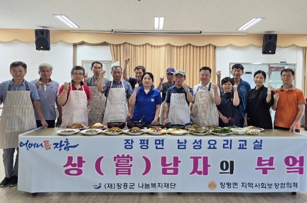 장흥군 나눔복지재단 공모사업을 지원받아 장평면 지역사회보장협의체 특화사업으로 추진된 남성요리교실 ‘상남자의 부엌’은 장평면 다목적회관에서 6월 10일부터 7월 29일까지 총 8주 과정으로 운영됐다.