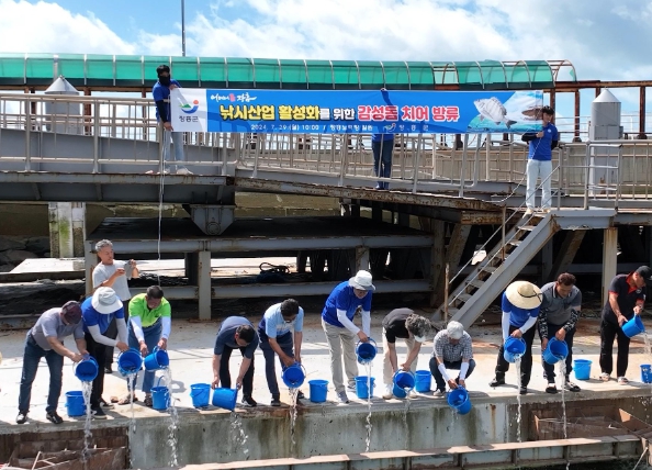 [남도저널 양용숙 기자] 장흥군은 최근 낚시산업 활성화 및 해양생태환경 복원을 위해 회진면 노력항 일대에 감성돔 치어 20만 미를 방류했다.