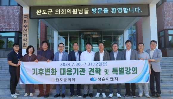 [남도저널 양용숙 기자] 완도군의회 의원 연구단체 ‘기후변화 대응 수산발전 정책연구회’(박재선 대표의원, 김양훈, 조인호, 허궁희, 조영식 의원)는 기후변화로 바다의 수온이 급격하게 상승해 고수온으로 인한 전복, 광어, 다시마 등 완도를 대표하는 수산물 피해가 매년 반복되고 있어 기후변화 실태를 분석하고 대응책을 마련하기위해 지난 7월 30일 2일간 부산 국립수산과학원, 여수 남해수산연구소, 고성 경남가리비수하식수협을 방문했다.