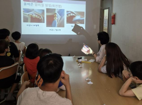 여름방학 동안 지역아동센터 아동 대상 구강관리 방문교육