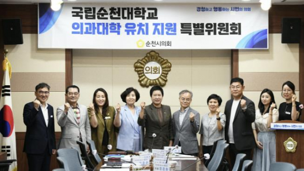 [남도저널 김영도 기자] 순천시의회는 지난 5일 폐회 기간 중 ‘국립순천대학교 의과대학 유치 지원 특별위원회’ 회의를 개최하여 순천에 의과대학을 유치하기 위한 논의를 진행했다.