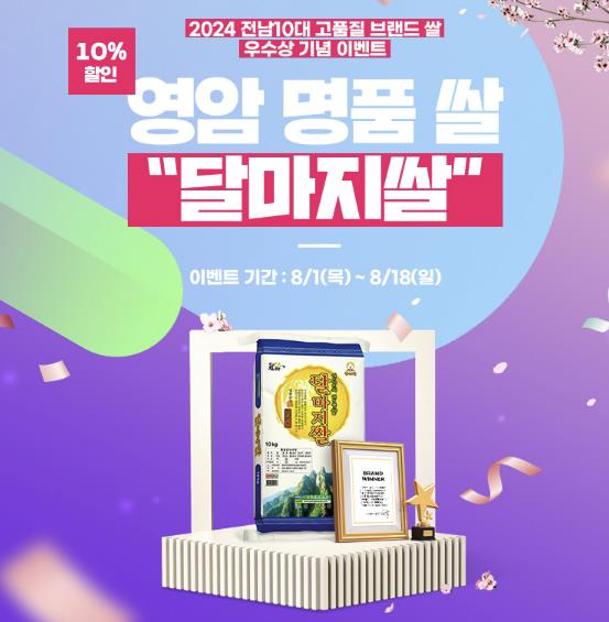 영암군은 9월 말까지 ‘쌀 소비촉진 범군민운동’을 추진하고 있고, 영암군 농특산품 온라인 판매장 ‘영암몰’에서는 전남 10대 브랜드 쌀 선정 기념이벤트로 10% 할인가로 달마지쌀을 판매하고 있다.