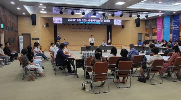 [남도저널 김영도 기자] 순천시주민자치협의회는 지난 6일 시청 대회의실에서 24개 읍면동 주민자치회장과 사무장, 관계자 등 48명이 참석한 가운데 정기회의를 개최했다.