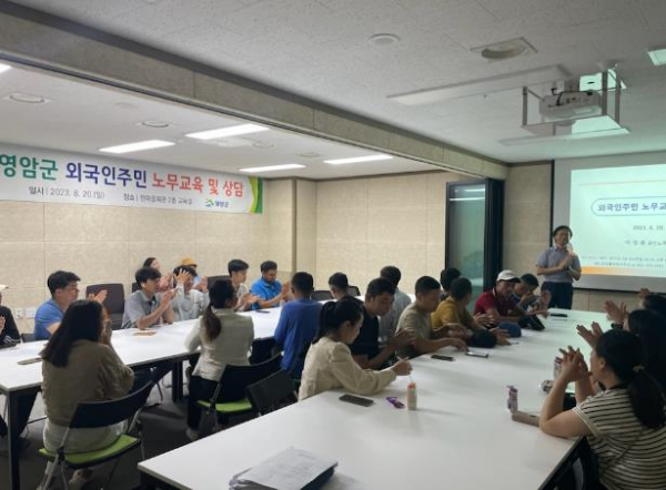 영암군외국인주민지원센터는 노무 상담 이외에도 매월 비자, 법률, 환경, 진로 진학 등 다른 주제로 상담·교육을 실시하고 있다.