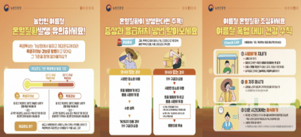군 관계자는 “연일 무더운 날씨로 폭염경보가 지속되고 있어 열사병 등 온열질환 발생 위험이 크다”라며 “농업 안전 수칙 홍보를 강화해 농업인의 온열질환 예방에 최선을 다하겠다”라고 말했다.