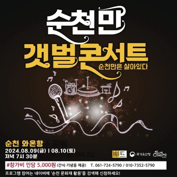 [남도저널 김영도 기자] 순천시는 오는 9일과 10일 19시 30분, 순천시 와온항에서 현악기의 향연으로 달콤한 여름밤을 선사할 ‘순천만 갯벌 콘서트(순천만은 살아있다)’가 열린다고 밝혔다.