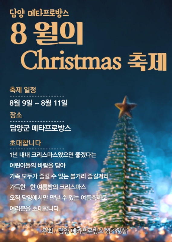 [남도저널 김종민 기자] 담양 메타프로방스 일대에 오는 8월 9일에서 11일까지 3일간 8월의 크리스마스 축제가 개최된다.