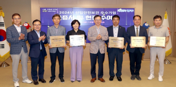 [남도저널 이운현 기자] 광주광역시는 9일 시청 비즈니스룸에서 ‘2024년 광주시 산업안전보건 우수기업’ 5개 사에 인증서와 현판을 수여했다.