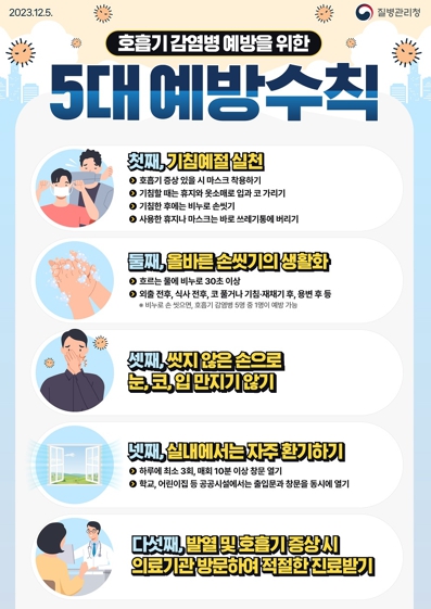 실내 환기, 마스크 착용, 손씻기 등 기침 예절 준수해야