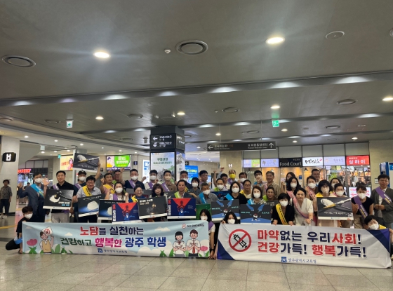 [남도저널 이운현 기자] 광주시교육청은 12일 광주종합버스터미널(유스퀘어) 내부에서 ‘흡연 및 마약·약물 오남용 예방 캠페인’을 전개했다.