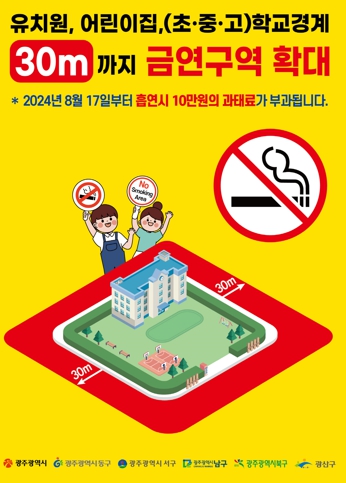 [남도저널 이운현 기자] 광주광역시는 오는 17일부터 유치원과 어린이집, 학교 주변 금연구역이 확대된다.