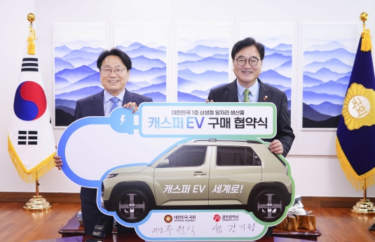 광주광역시와 국회는 13일 오전 국회에서 ‘캐스퍼EV 구매협약’을 체결했다. 협약식에는 강기정 광주시장과 우원식 국회의장 등이 참석했다.