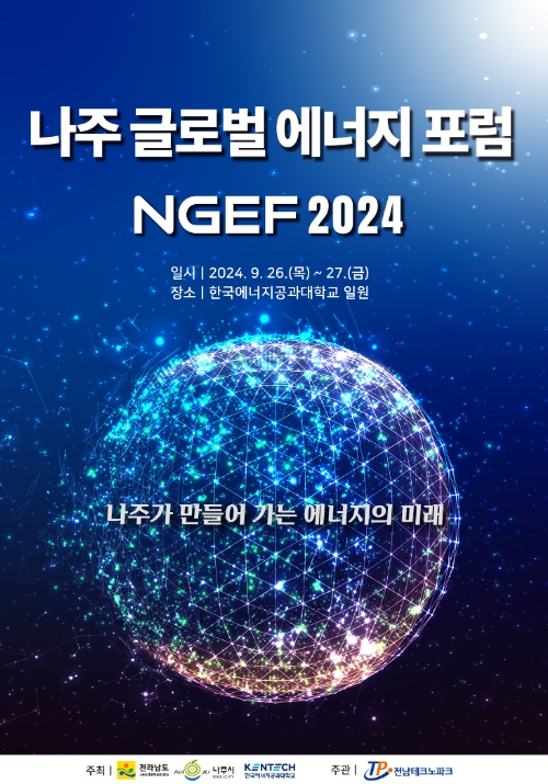 나주시(시장 윤병태)는 오는 9월 26일부터 27일까지 이틀간 빛가람 혁신도시에 위치한 한국에너지공과대학교(KENTECH·켄텍) 일원서 ‘나주 글로벌에너지포럼2024’를 개최한다고 13일 밝혔다.