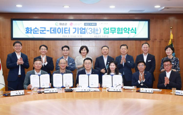 [남도저널 김용범 기자] 화순군은 지난 13일 군청 소회의실에서 ㈜LG유플러스, NICE지니테이타㈜, ㈜티브릿지코퍼레이션 등 국내 최고의 데이터 관련 선도기업 3사와 '도시데이터 기반 화순군 현안과제 해결'을 위한 업무협약을 체결했다고 밝혔다.