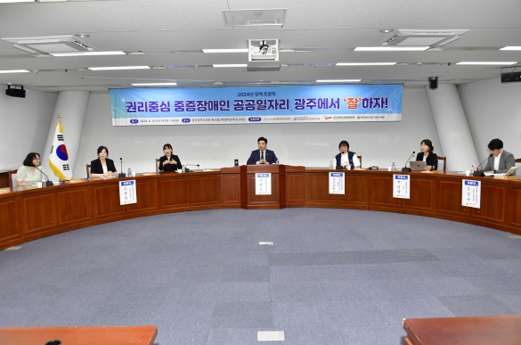 [남도저널 이운현 기자] 이명노 의원(더불어민주당, 서구3)은 지난 14일 광주시의회 5층 예결위실에서 ‘권리중심 중증장애인 공공일자리, 광주에서 ‘잘’ 하자! 정책토론회’를 개최했다.