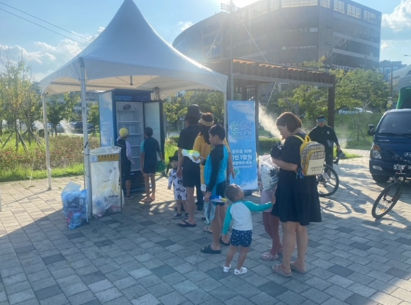 생수 나눔 냉장고가 설치된 곳은 빛가람호수공원, 한수제 물레(데크)길, 영산강 둔치 체육공원 세 곳으로 시민 누구나 무료로 1인 1병씩 이용할 수 있다.