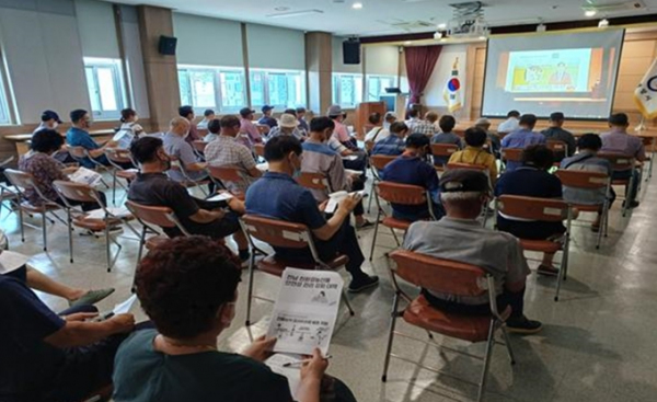 이번 교육은 잔류농약 검출, 비의도적 오염 위험으로 친환경 인증이 취소돼 농가소득이 감소하는 데 따른 불이익을 예방하고 농업인 스스로 친환경 인증기준과 의무사항을 지키기 위해 마련됐다.