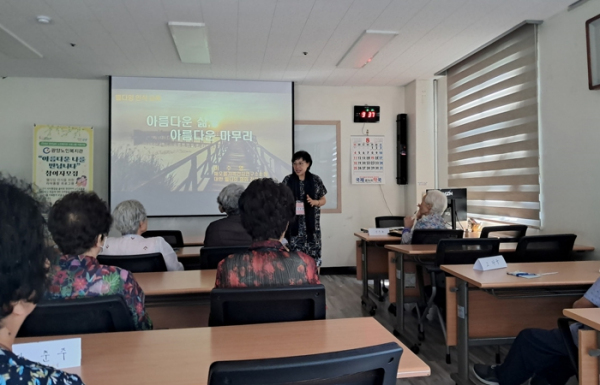 최난숙 노인장애인과장은 “교육을 통해 본인의 삶을 긍정적으로 돌아보고 아름답고 가치 있게 마무리하며 노년기의 지혜를 배우는 시간을 갖기를 바란다”라고 말했다.