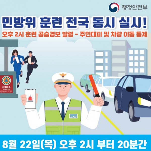 조선미 안전과장은 “민방위 대피 훈련 시행으로 주민과 차량 이동을 통제해야 하는 탓에 다소 불편함이 있으시겠지만, 시민의 생명을 지키는 훈련인 만큼 시민 여러분의 적극적인 참여와 이해를 당부드린다”라고 말했다.