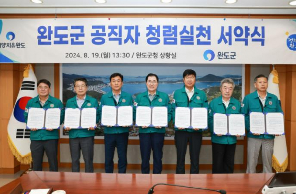 [남도저널 양용숙 기자] 완도군은 지난 19일 민선 8기 2주년을 맞아 5급 이상 고위 공직자를 대상으로 반부패·청렴 실천 서약식을 가졌다.