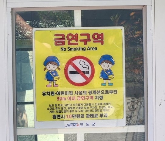 [남도저널 김승귀 기자] 진도군보건소는 「국민건강증진법」 개정·시행에 따라 8월 17일부터 어린이집·유치원·학교 시설의 경계선으로부터 30미터 이내로 금연 구역이 확대 적용된다고 밝혔다.