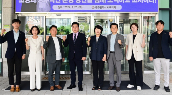 [남도저널 김홍열 기자] 광주광역시 서구의회는 8월 20일, 기획총무위원장 김균호 의원 대표로 총 8명의 의원이'‘김대중‧이희호 기념관’ 조성과 영구적인 운영 방안 모색'을 촉구하는 성명서를 발표했다.