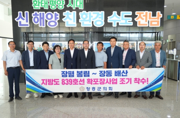 [남도저널 양용숙 기자] 장흥군의회는 지난 21일 주민 대표들과 함께 전라남도 건설교통국을 방문하여 ‘장평 봉림-장동 배산 간 지방도 839호선 4차선 확포장 사업’의 조기 착수를 강력히 요청했다.