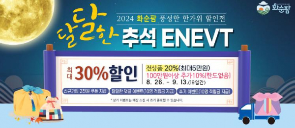 [남도저널 김용범 기자] 화순군은 다가오는 추석명절을 맞이하여 화순팜에서 “추석맞이 달달한” 이벤트를 8월 26일부터 9월 13일까지 실시한다고 밝혔다.