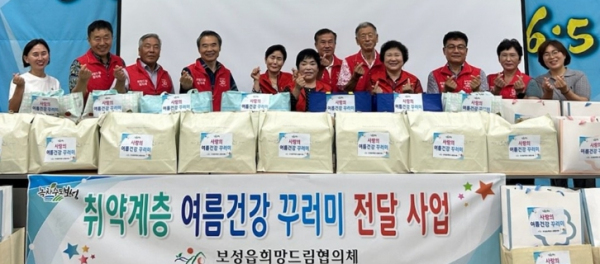 [남도저널 서인호 기자] 보성군은 지난 21일 보성읍희망드림협의체(위원장 김기성, 민간위원장 김재균)가 폭염에 취약한 홀로 계신 어르신 및 취약계층 30가구에 여름 물품 꾸러미를 전달하는 ‘사랑의 여름 건강 꾸러미 전달 사업’을 진행했다고 밝혔다.