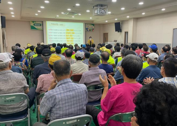 [남도저널 양용숙 기자] 강진군이 지난 22일 공익형, 사회서비스형, 시장형 노인일자리 참여자 150명을 대상으로 혹서기 안전, 직무, 웃음테라피 등 다양한 주제로 교육을 실시했다.