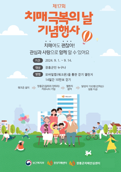 [남도저널 양용숙 기자] 장흥군은 치매극복의 날(9월 21일)을 맞아 ‘2024년 치매극복의 날 기념 걷기행사’를 진행한다고 밝혔다.
