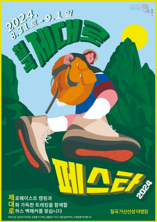 [남도저널 김용범 기자] 트레킹과 캠핑을 선호하는 젊은층의 여행 트렌드를 반영한 ‘칠곡 제대로페스타’가 8월 31일부터 9월 1일까지 1박 2일 일정으로 팔공산국립공원 가산산성 야영장 일대에서 개최된다.
