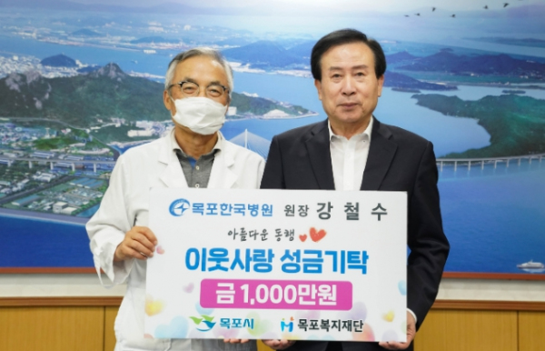 [남도저널 박기철 기자] 목포한국병원 강철수 원장이 지난 23일 이웃사랑 성금 1,000만원을 목포복지재단에 기탁했다.