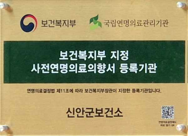 [남도저널 봉현구 기자] 신안군은 신안군보건소가 사전연명의료의향서 등록기관으로 지정되어 주민들이 사전연명의료의향서를 등록할 수 있게 됐다고 밝혔다.