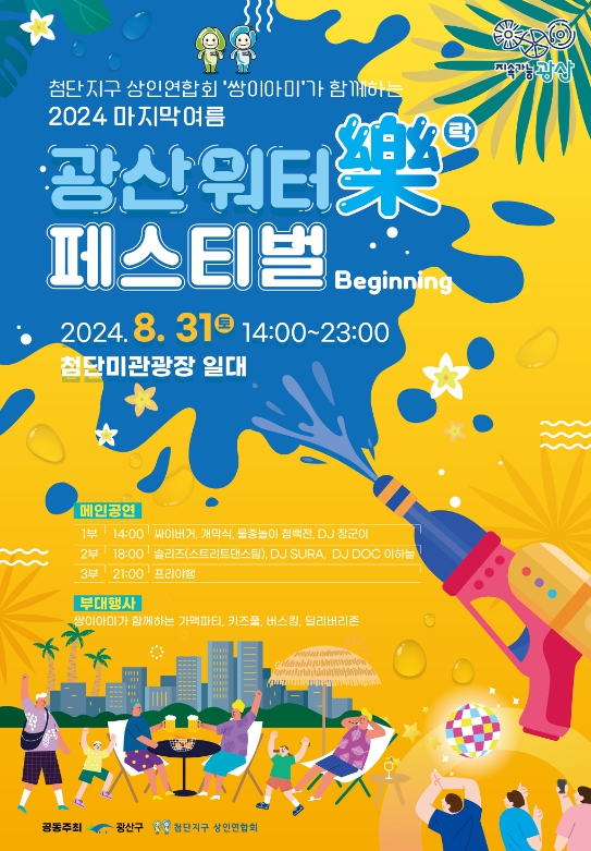 31일 오후 2시부터 저녁 11시까지 첨단 미관광장(쌍암동 666—11) 일원에서 올해의 ‘마지막 여름’을 시원하게 적실 흥겨운 음악과 공연, 다양한 부대행사가 펼쳐진다.