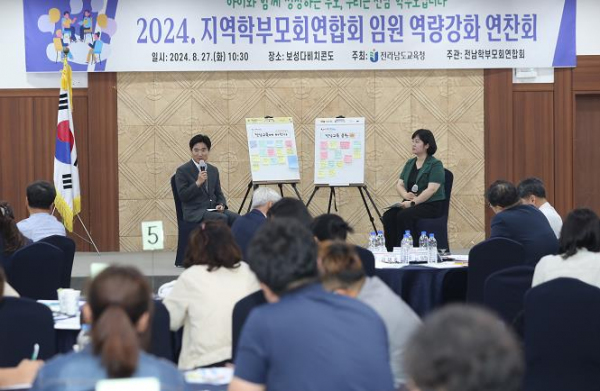 [남도저널 박기철 기자] 전라남도교육청은 27일 보성다비치콘도에서 ‘2024 지역학부모연합회 임원 역량 강화 연찬회’를 열고, 전남교육정책과 관련한 소통‧논의의 장을 펼쳤다.