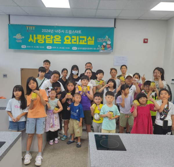 [남도저널 김용범 기자] 전라남도 나주시는 지난 12일과 24일에 드림스타트 사례관리 아동 및 양육자 42명을 대상으로 진행한 '사랑담은 요리교실'을 성공적으로 마무리했다고 27일 밝혔다.